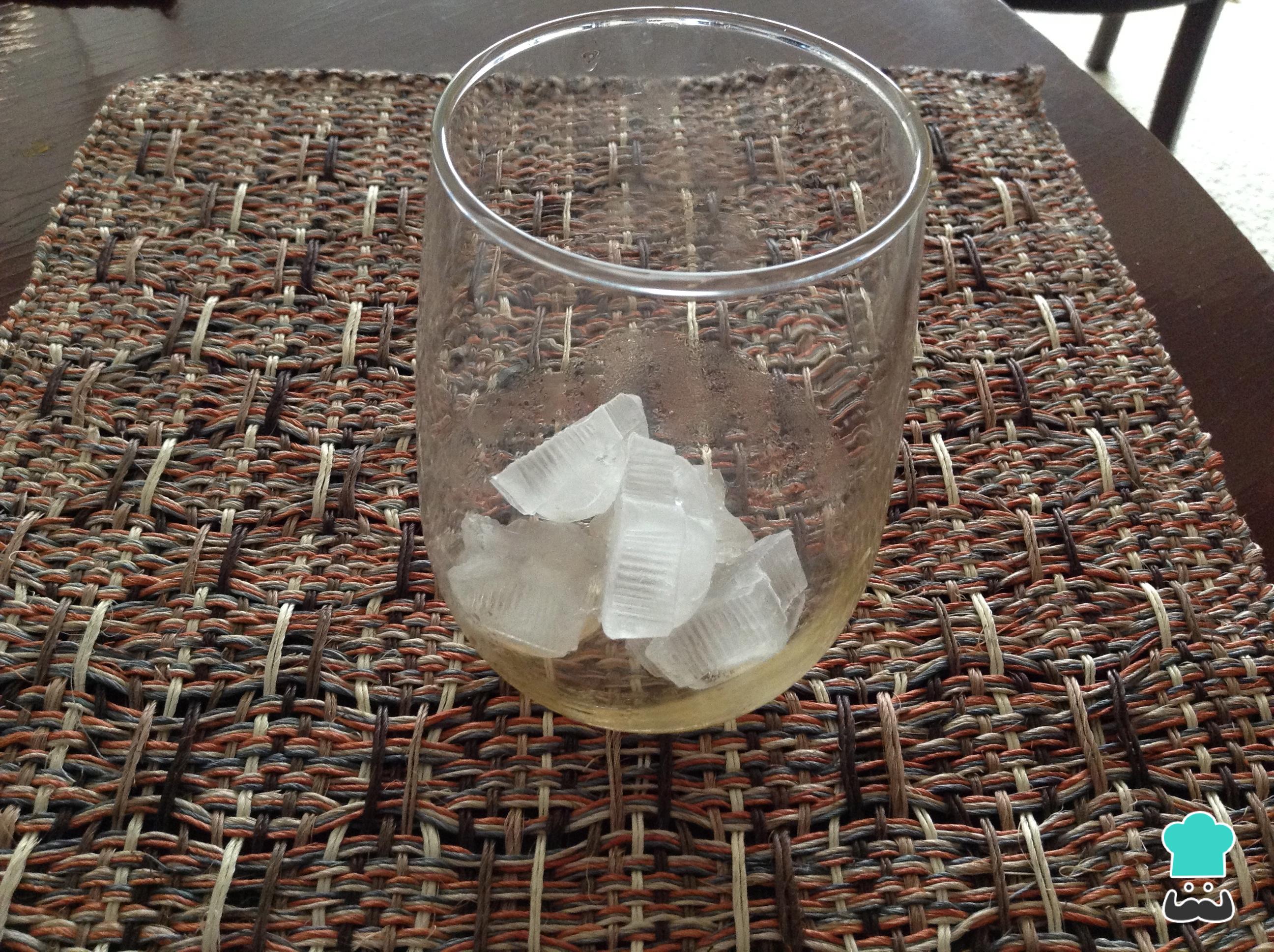 Adiciona en un vaso la cantidad de hielos que desees y refresca el vaso (durante 1 o 2 minutos para que el vaso enfrie)