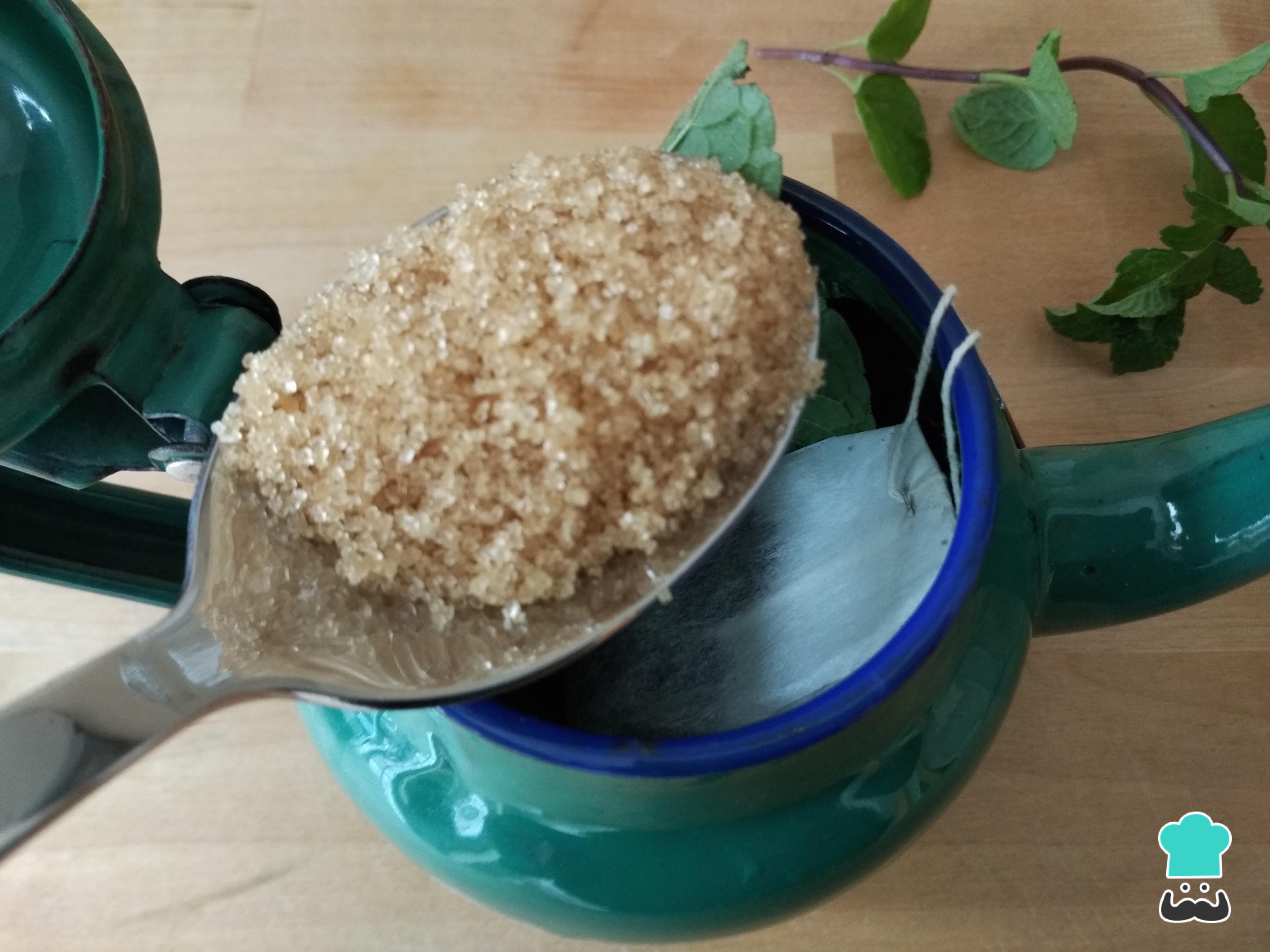 Añadimos el azúcar moreno en la tetera. Si lo preferís, podéis utilizar azúcar blanco o miel.