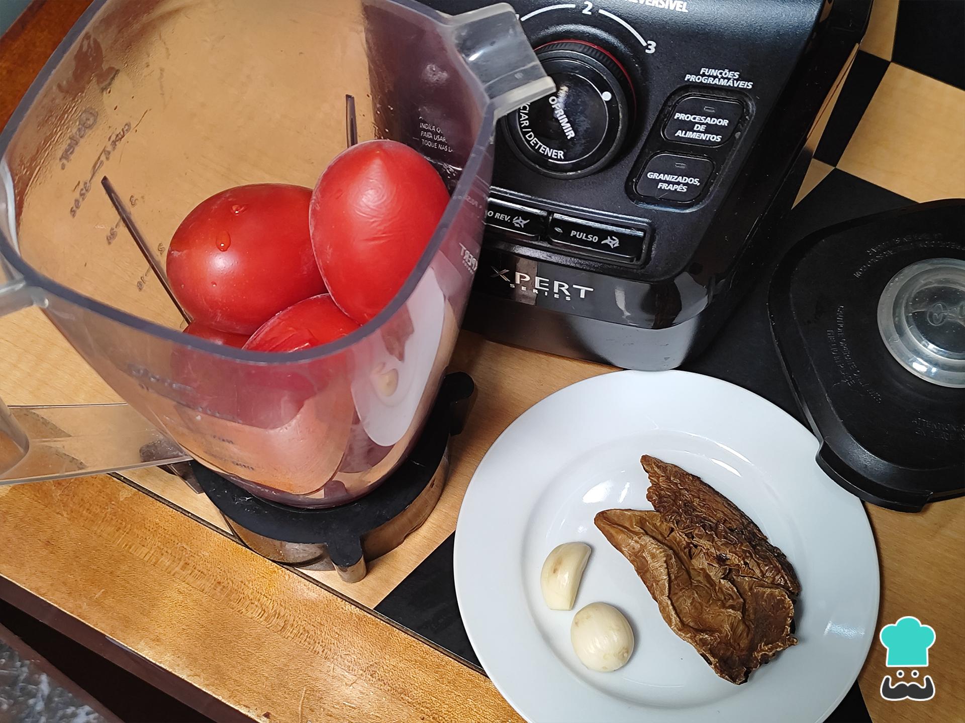 Cuando los tomates estén cocidos, licúa con los dientes de ajo, los chiles chipotle y un poco del agua de la cocción de los tomates, licua hasta obtener una salsa suave sin grumos.