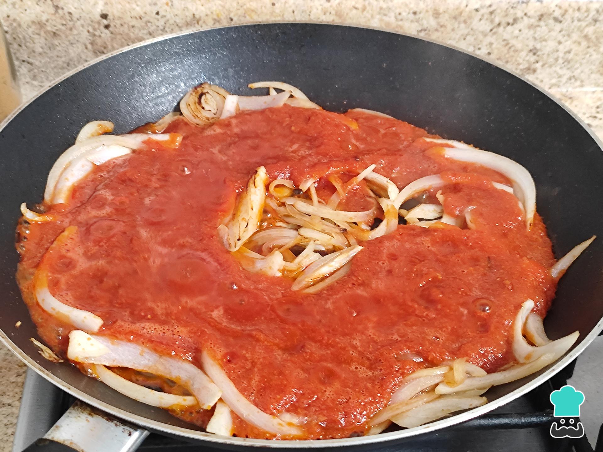 Cuando la cebolla esté ligeramente transparente, vierte la salsa licuada y cocina alrededor de 7 minutos para que espese ligeramente.