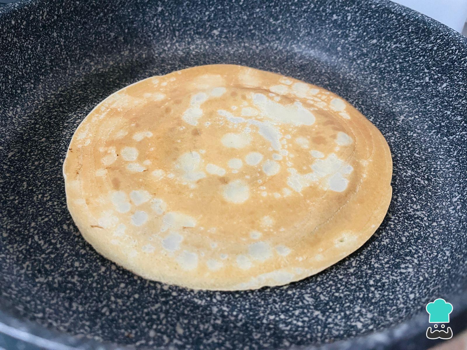 Cocina los panqueques agregando un cucharón sobre una sartén antiadherente untada con aceite o manteca. Cuando se hagan globos y se despegue, gíralo para cocinarlo del otro lado. Repite hasta usar toda la masa.
