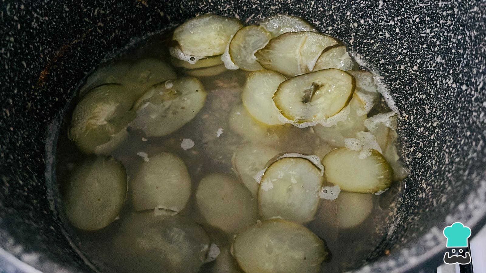 Puedes preparar pepinillos en conserva cocinando 1 pepino chico en rodajas con 1 taza de vinagre y 1 de agua, semillas de pimienta, 1 hoja de laurel y semillas de mostaza por unos 20 minutos o hasta que estén tiernos. Al retirarlo, agrega 1 cucharada de azúcar y reserva hasta que se enfríen.