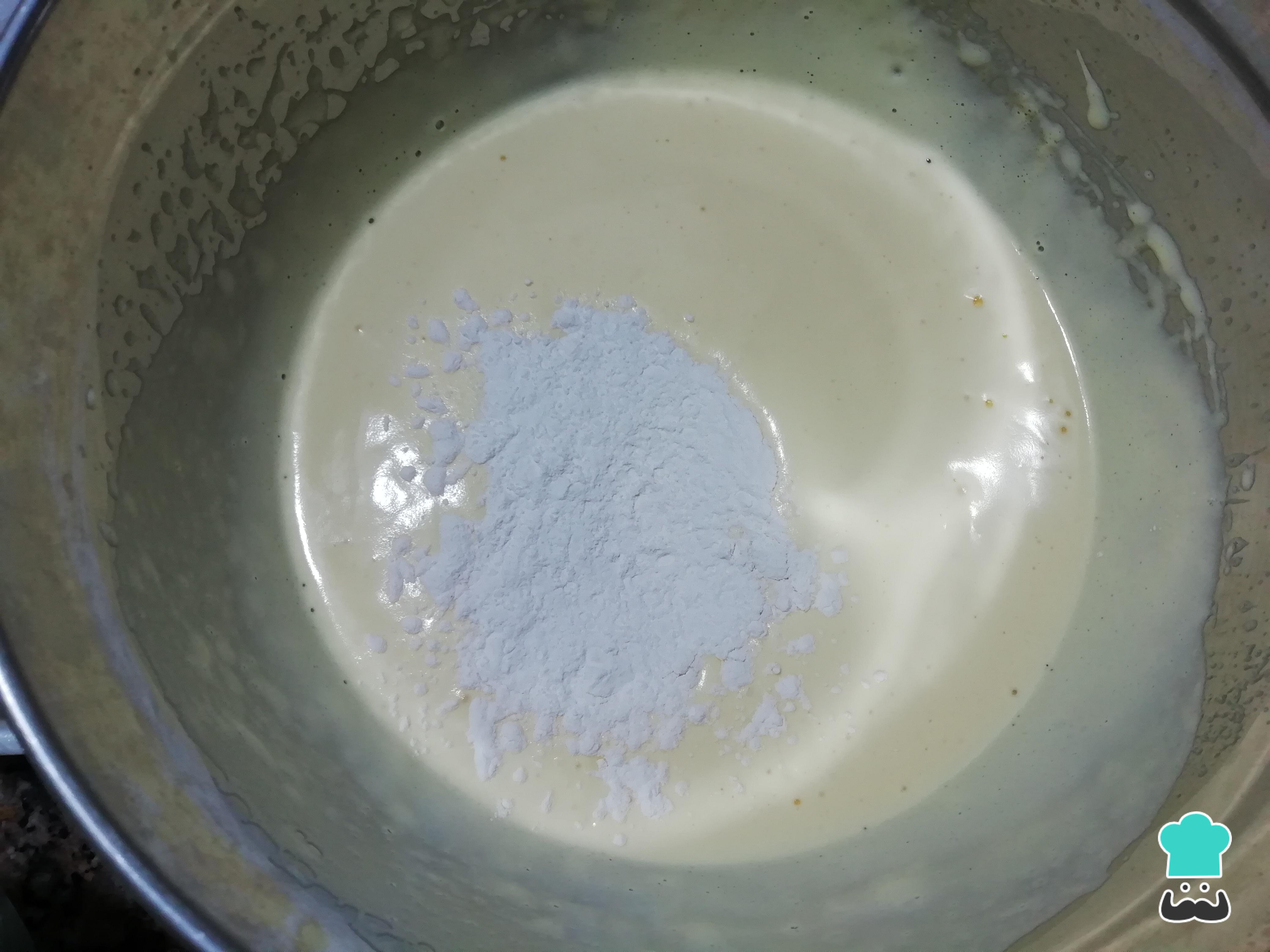 Bate los huevos junto con el azúcar hasta llegar a punto letra, es decir, hasta que, al levantar la espátula, puedas hacer una letra o una figura con el batido.
