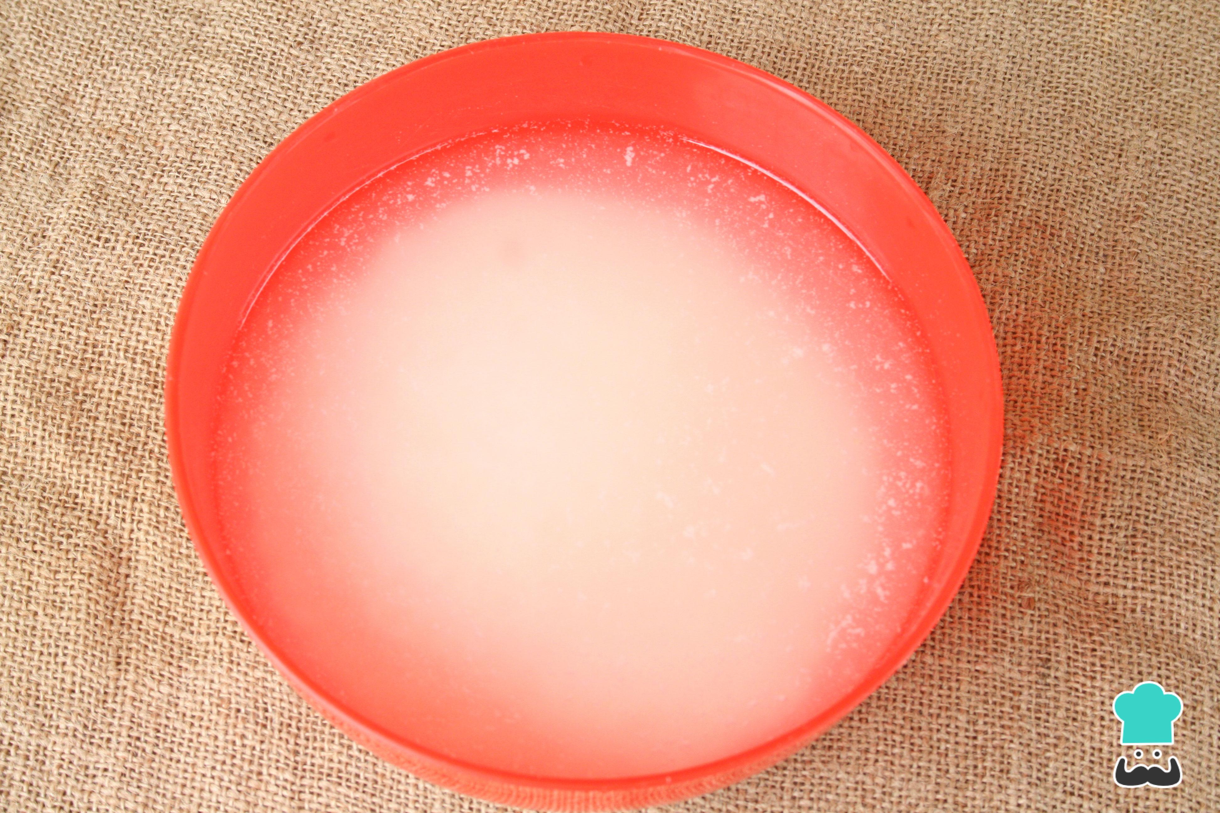 Dentro de un cuenco grande agrega el arroz y vierte el agua. Remueve y deja que repose durante 8 horas, así el arroz se hidratará.