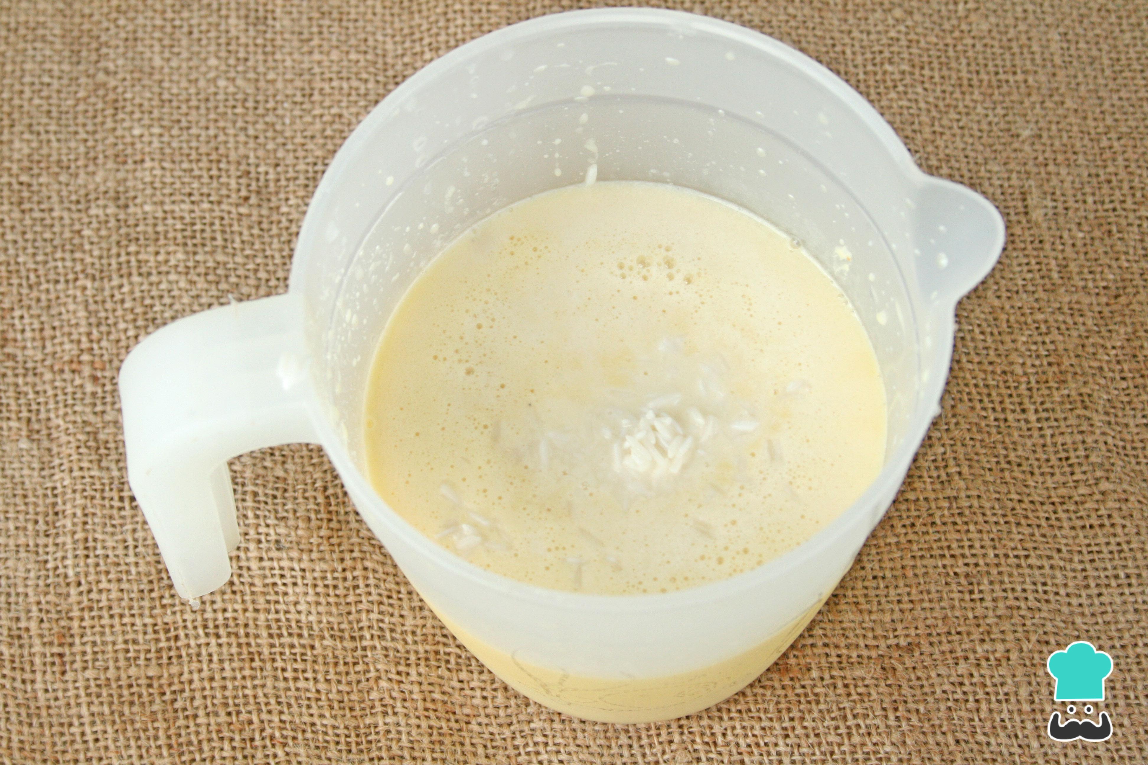 Truco: La mezcla del pastel de arroz es bastante liquida, pero no te preocupes.