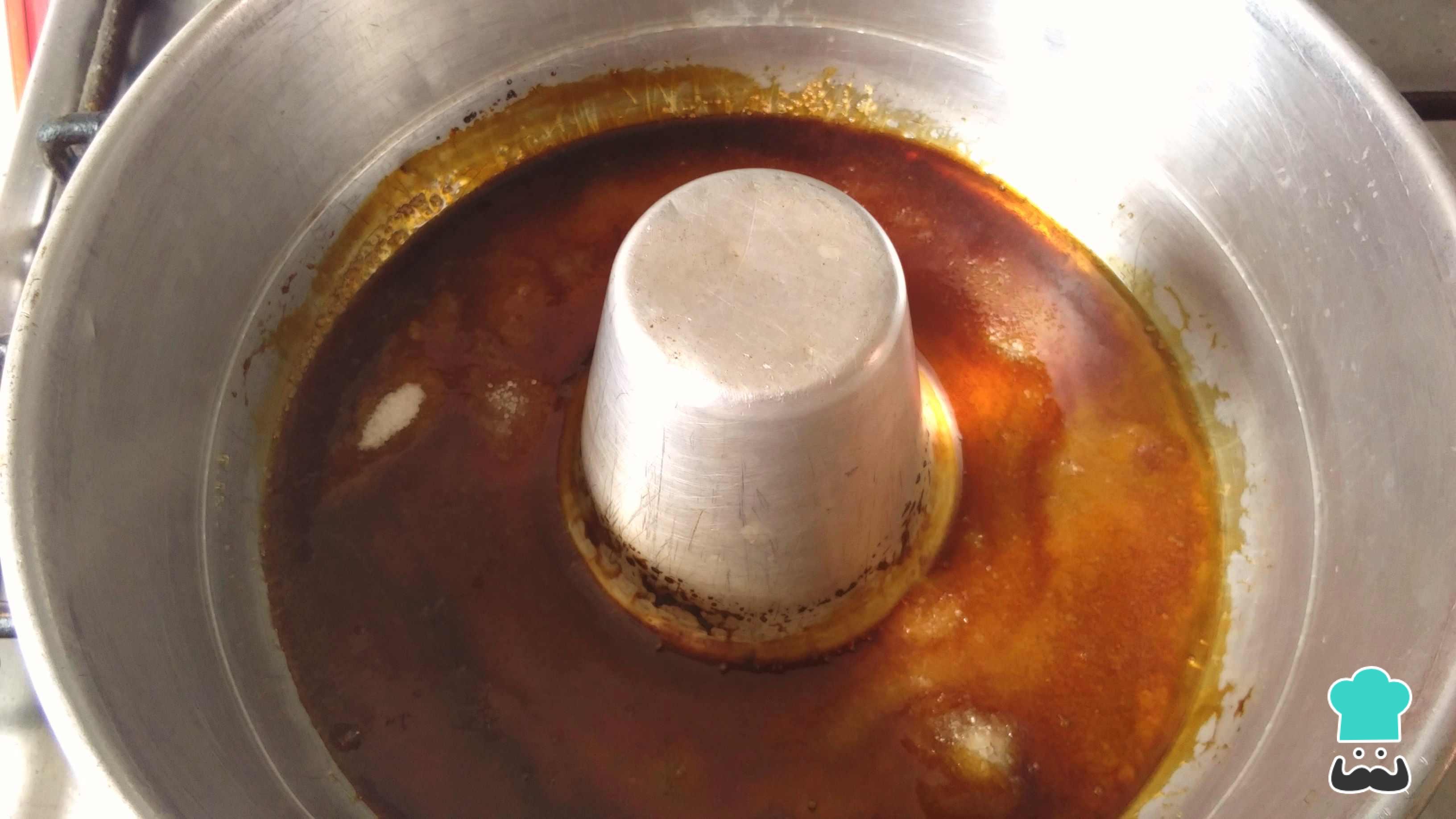 Es importante prestar atención en esta fase, pues el caramelo puede quemarse con un descuido y amargar su sabor. Cuando obtenga un bonito color dorado, retira la quesillera del fuego ayudándote de unos guantes de cocina. Es importante que no revuelvas con una cuchara, simplemente mueve el envase para que el azúcar se caramelice de manera uniforme.