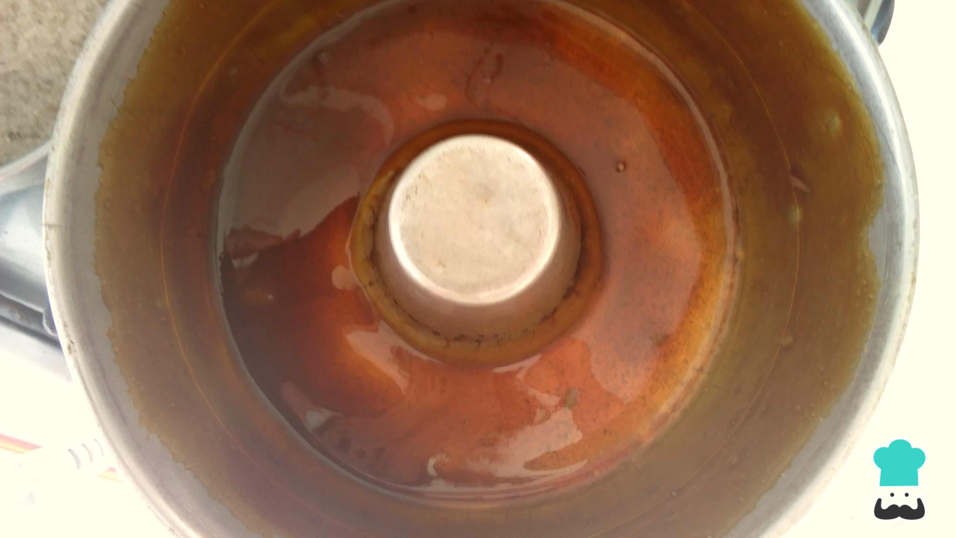 Una vez esté bien caramelizado, distribuye el almíbar por todos los lados de la quesillera. Deja que enfríe. Es posible que, al enfriar, se escuche como si se quebrara el caramelo. Es normal y no afecta para nada el postre.