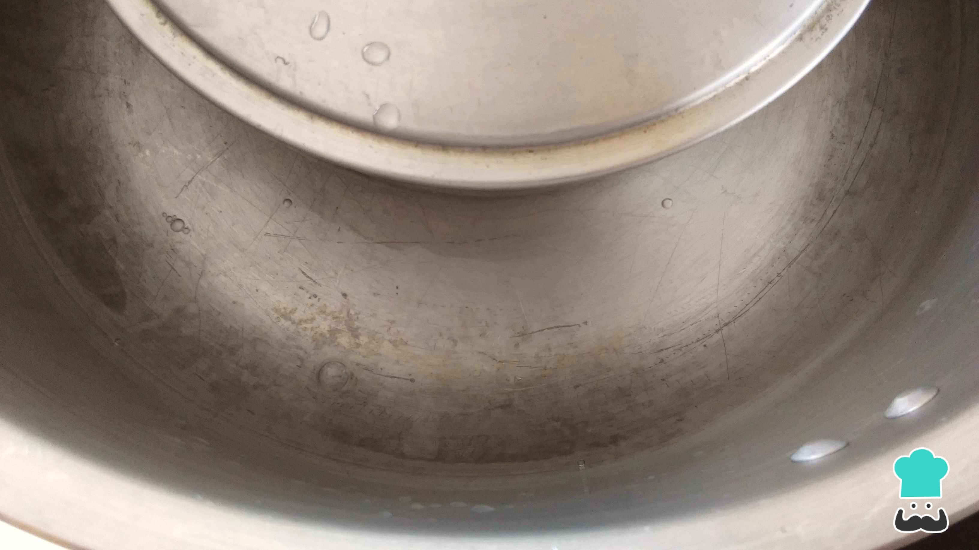 Llena de agua la olla grande hasta que alcance más o menos la mitad de la quesillera y calienta a fuego medio. Deja hervir por 1 hora 20 minutos, aproximadamente. Mientras transcurre el tiempo de la cocción, revisa el nivel del agua dos o tres veces para evitar que se evapore por completo, pero no destapes la quesillera.