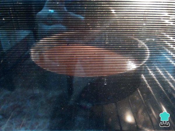 Vierte la masa del bizcocho húmedo de chocolate en un molde para horno previamente enharinado y enmantecado y lo hornea a 180 ºC (con el horno previamente precalentado) durante 50 minutos.
