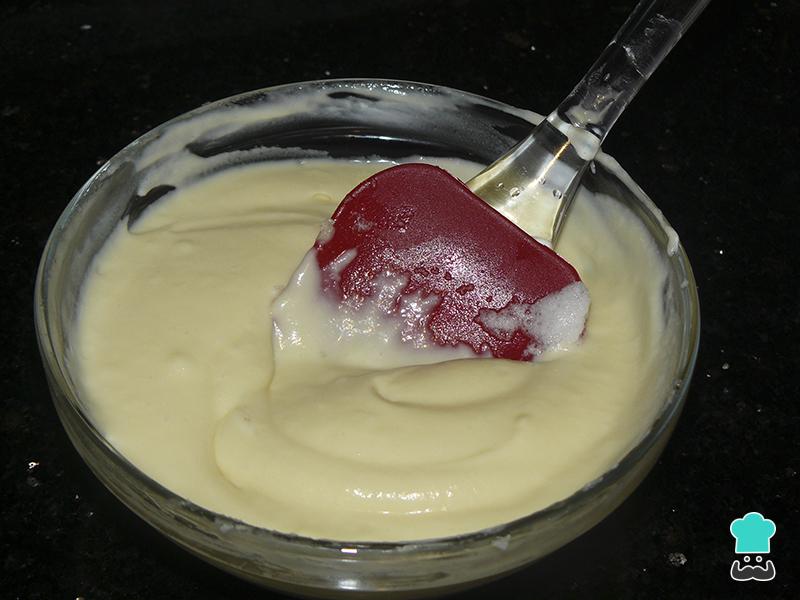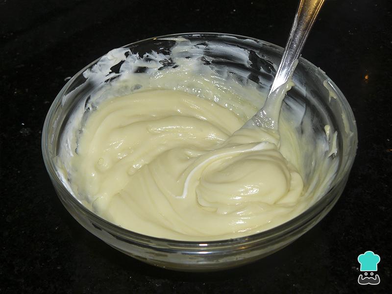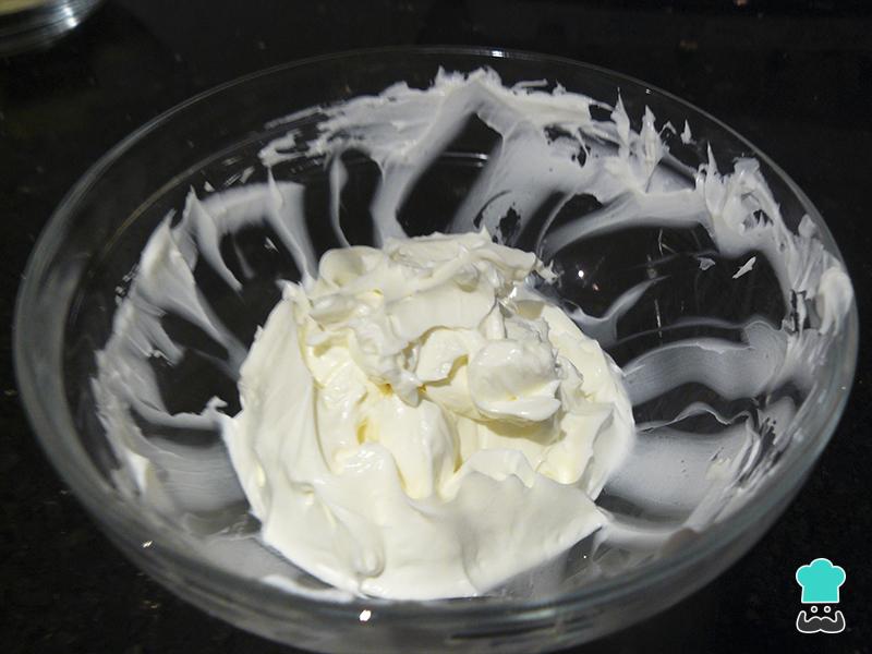 Una vez deshecho el chocolate, lo dejamos que temple y, seguidamente, procedemos a mezclarlo con el queso mascarpone batido.