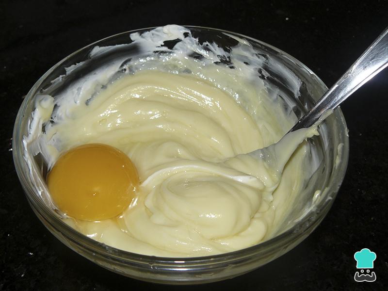 Cuando hayamos integrado bien ambos ingredientes, sumamos la yema del huevo. La clara la apartamos. Mezclamos y reservamos.