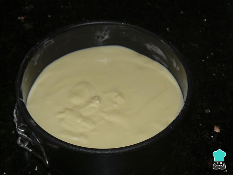 Engrasamos el molde en el que vamos a hornear el pastel de queso japonés. Calentamos el horno a 150 grados.