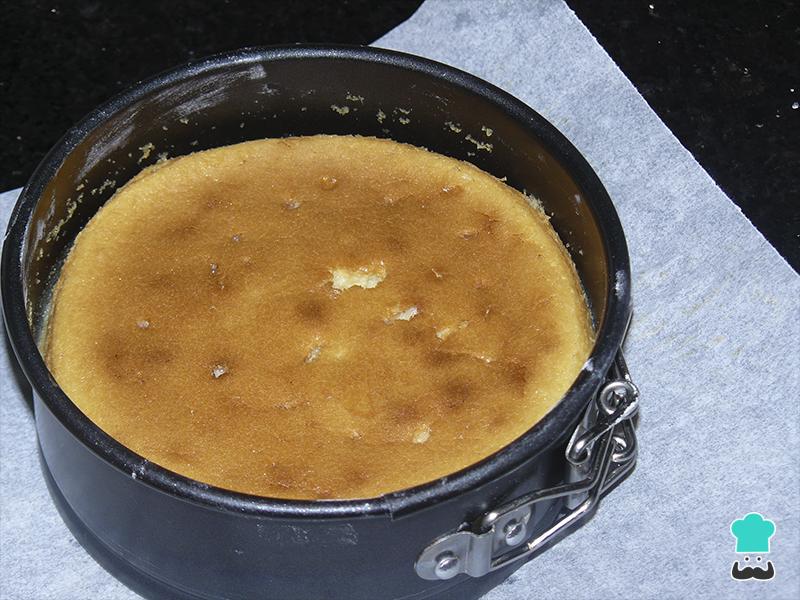 Para hornear el pastel japonés, lo hacemos con el agua que habíamos utilizado al principio para deshacer el chocolate blanco. Vertemos esta sobre una fuente amplia en la que podamos meter el molde del pastel y que sea apta para horno. Introducimos el pastel y dejamos que se haga al baño maría al menos 30 minutos. Vigila el punto con un palillo y si pasados esos 30 minutos no está hecho, ve dejando cinco minutos y testando hasta que el palillo salga limpio. Una vez hecho, dejamos enfriar la torta japonesa antes de desmoldarla y a disfrutar. Si quieres puedes espolvorear un poco de azúcar glass por encima. ¡Itadaikimasu!