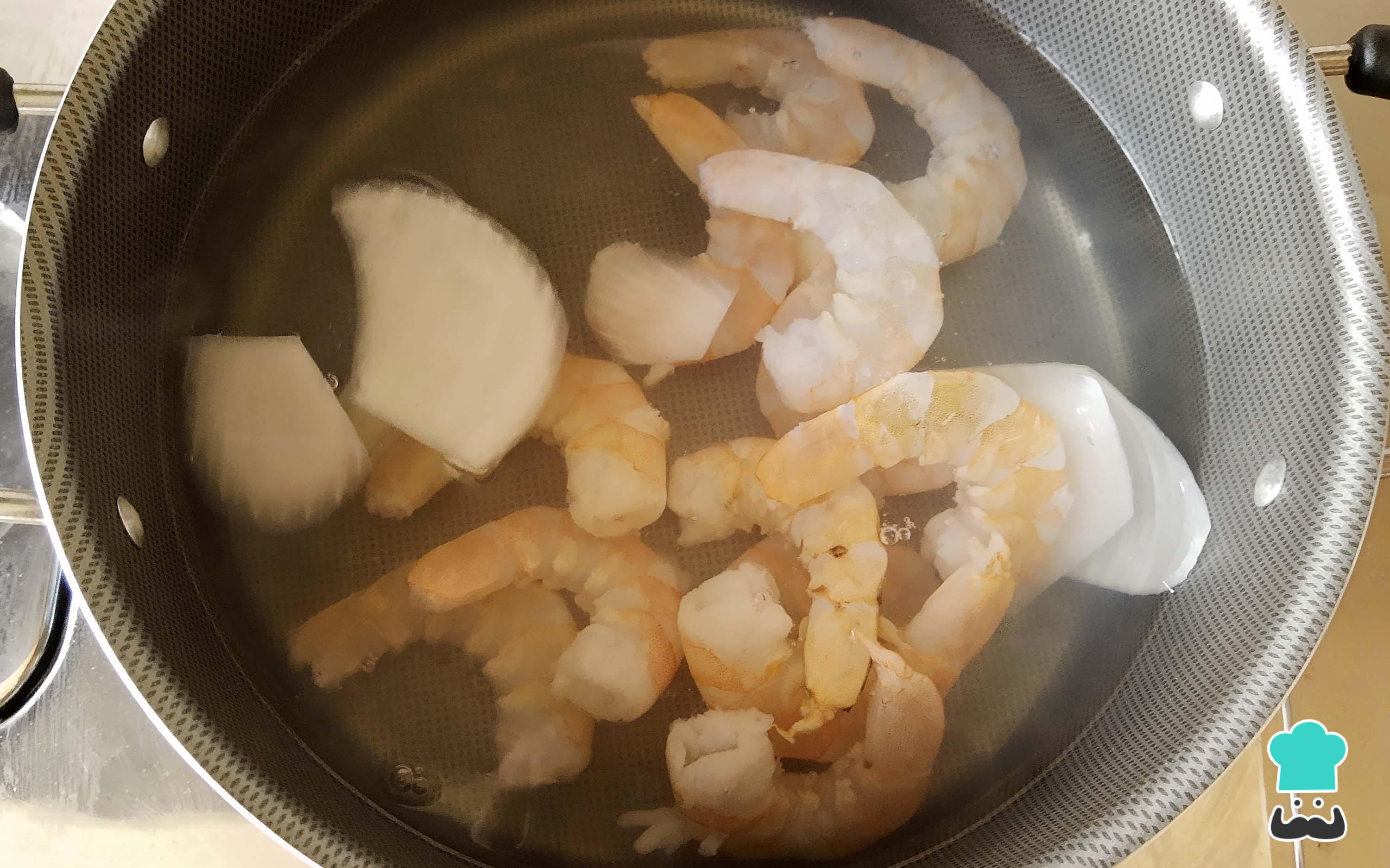 Truco: si utilizas la cáscara del camarón, retírala del agua antes de agregar los camarones.