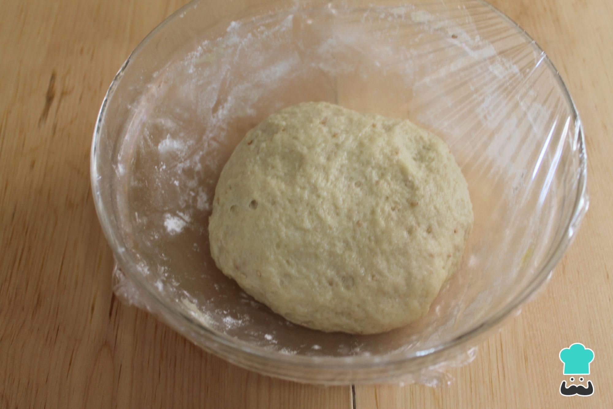 Forma una bola con la masa, cubre el bol con papel film y deja reposar en un lugar cálido y sin corrientes de aire durante 1 hora.