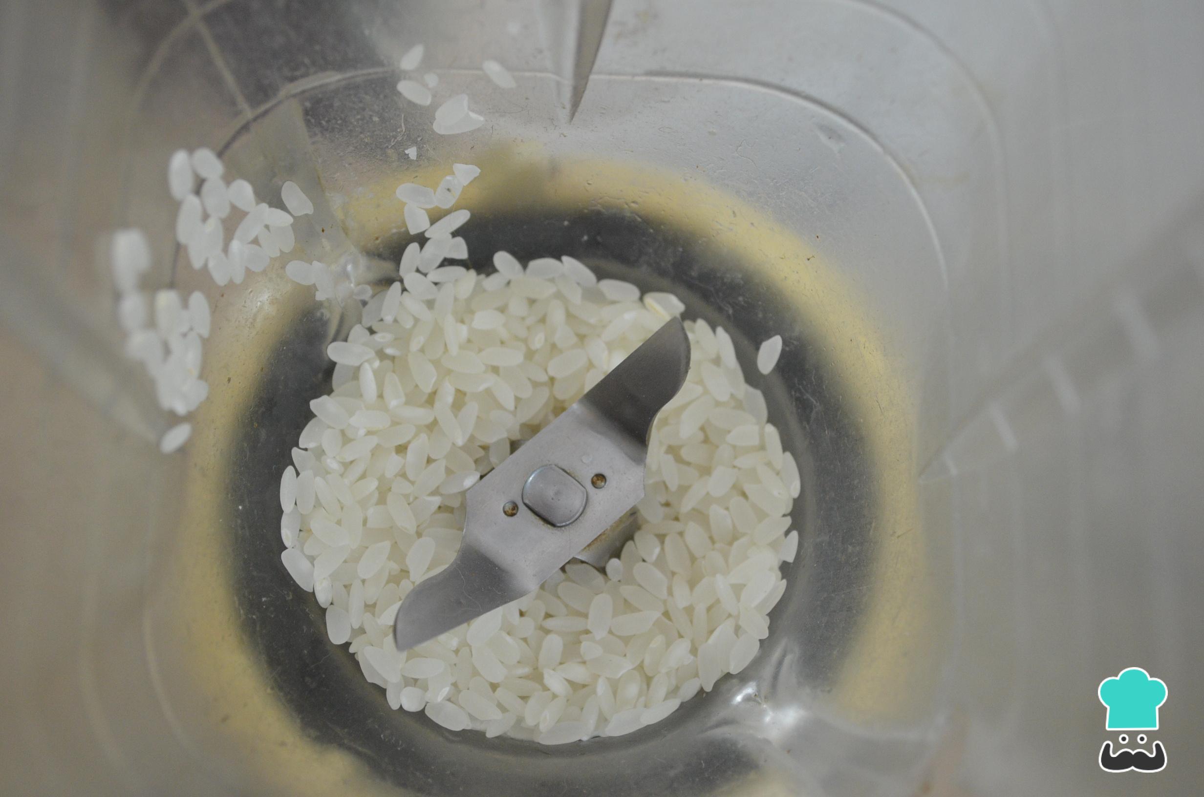 Moler el arroz crudo en un procesador de alimentos o licuadora hasta que esté bien triturado.