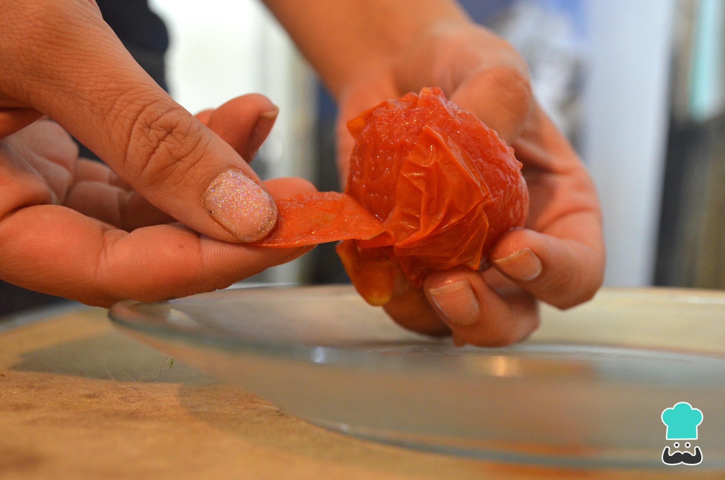 Una vez que estén cocidos, pelar los jitomates y molerlos junto con la cebolla y el ajo.