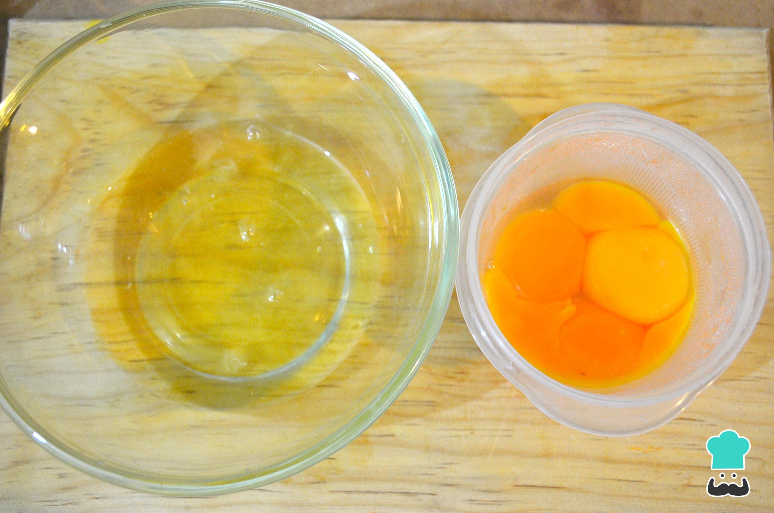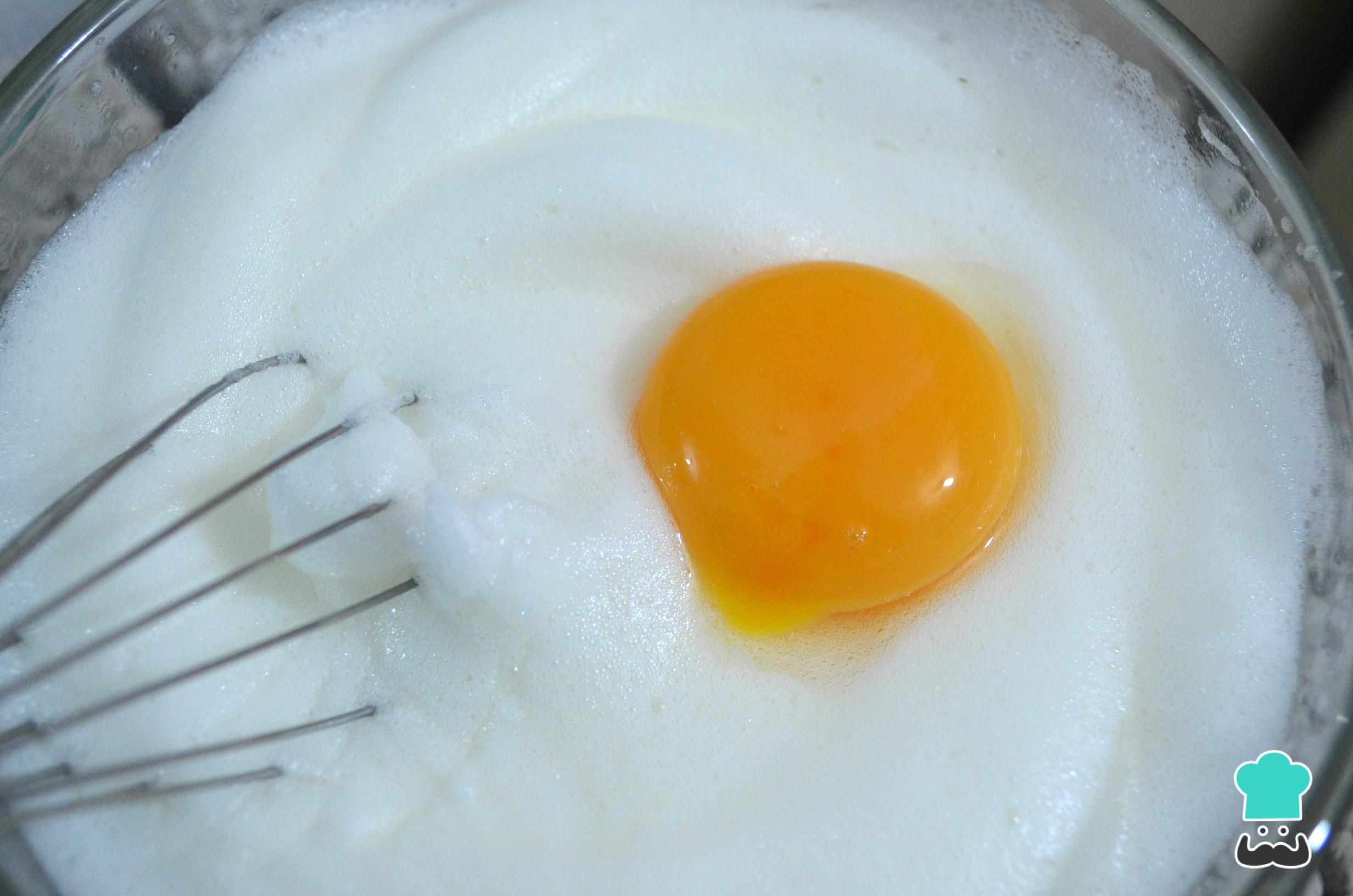 Batir las claras de huevo hasta que formen picos firmes. Añadir las yemas una por una y batir suavemente hasta integrar.