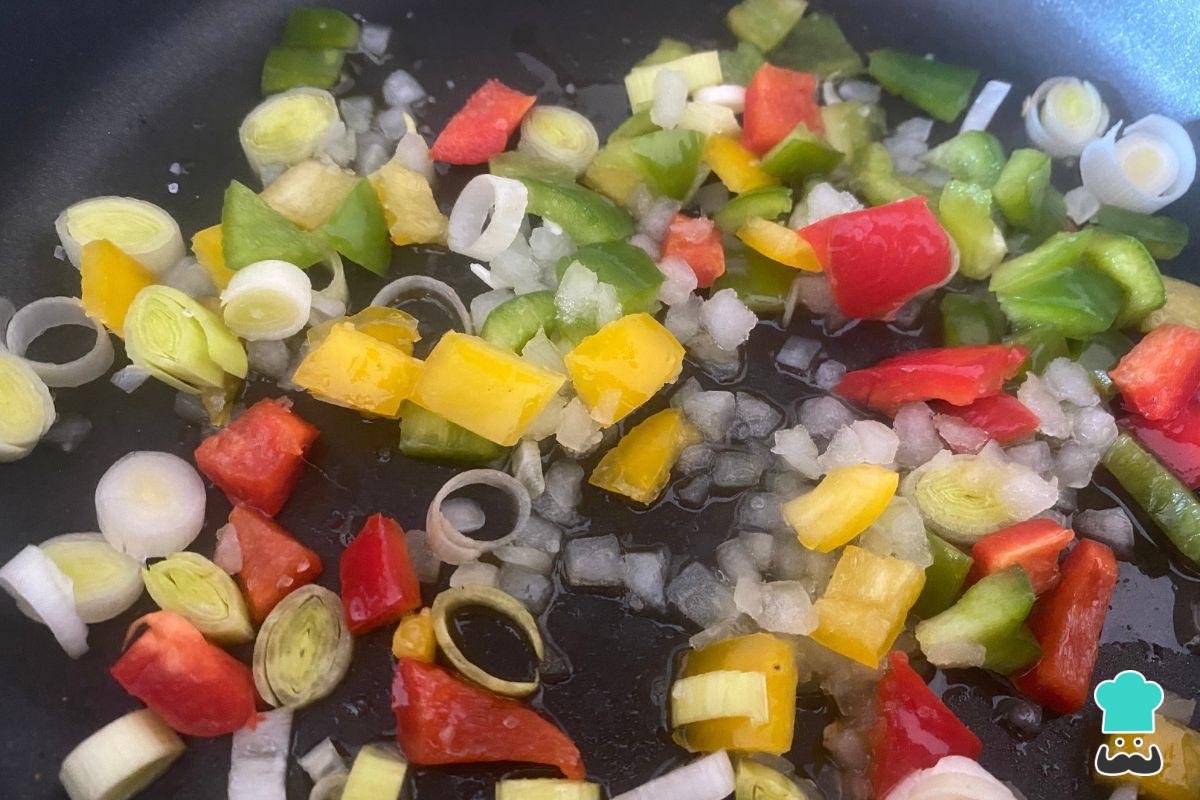 En una sartén con un poco de aceite coloca los vegetales y saltéalos hasta que estén bien hechos. De esta forma, quedarán más integrados en la tortilla campera.