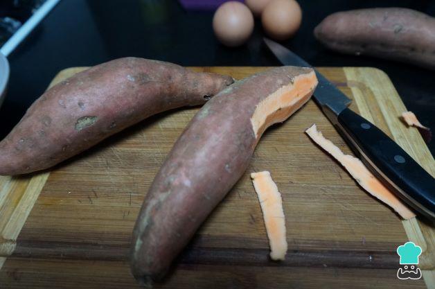 Pela los boniatos. Incorpora la cantidad que te guste según el grosor de la tortilla.