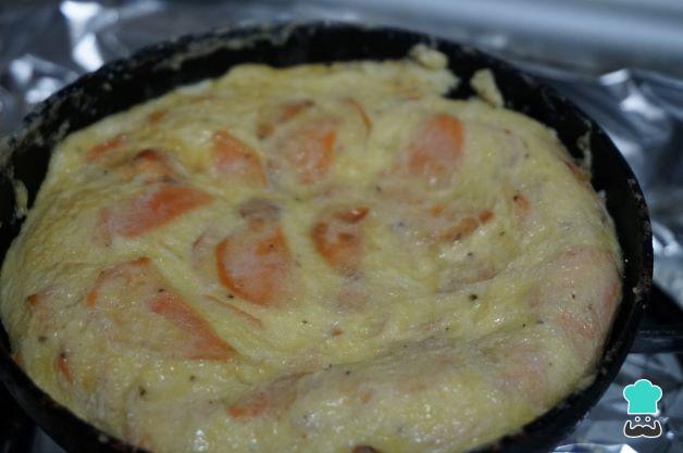 Coloca a calentar una sartén con un poco de aceite y, cuando esté caliente, añade la mezcla de la tortilla. Deja que se vaya cuajando.