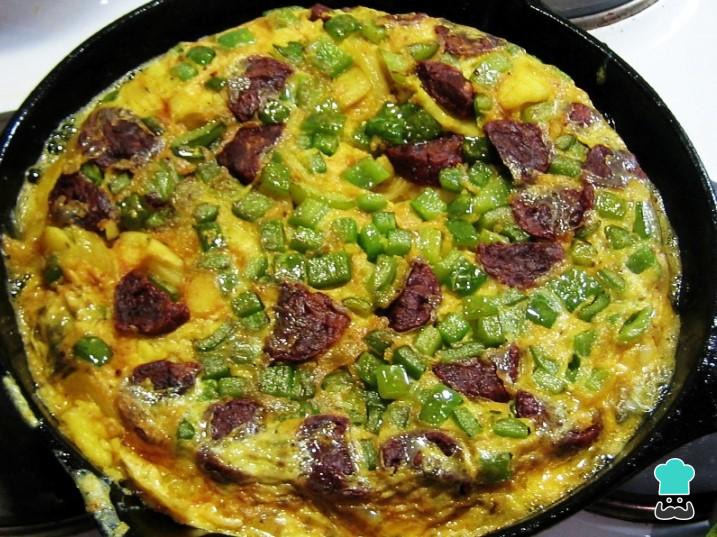 A continuación, se baten los huevos y se mezclan con un poco de tuétano, pimientos morrones y el conjunto rehogado anteriormente.