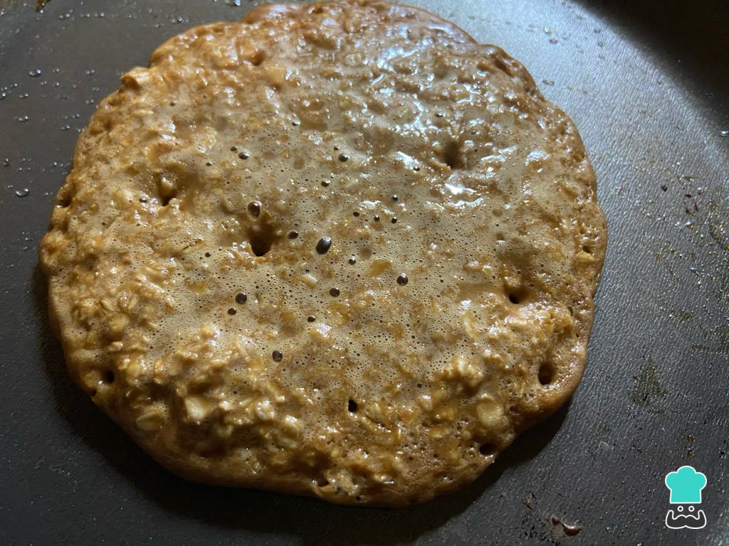 Para la cocción de las tortitas, pincela una sartén con unas gotitas de aceite. A continuación, lleva al fuego medio para que se caliente y cuando esto ocurra, vierte una porción de masa, con la ayuda de un cucharón. Proporciona forma circular y baja el fuego. Cuando haga agujeritos en la superficie (como se ve en la foto), gírala con espátula para dorar del otro lado. Luego, retira y continúa con el resto de la masa.