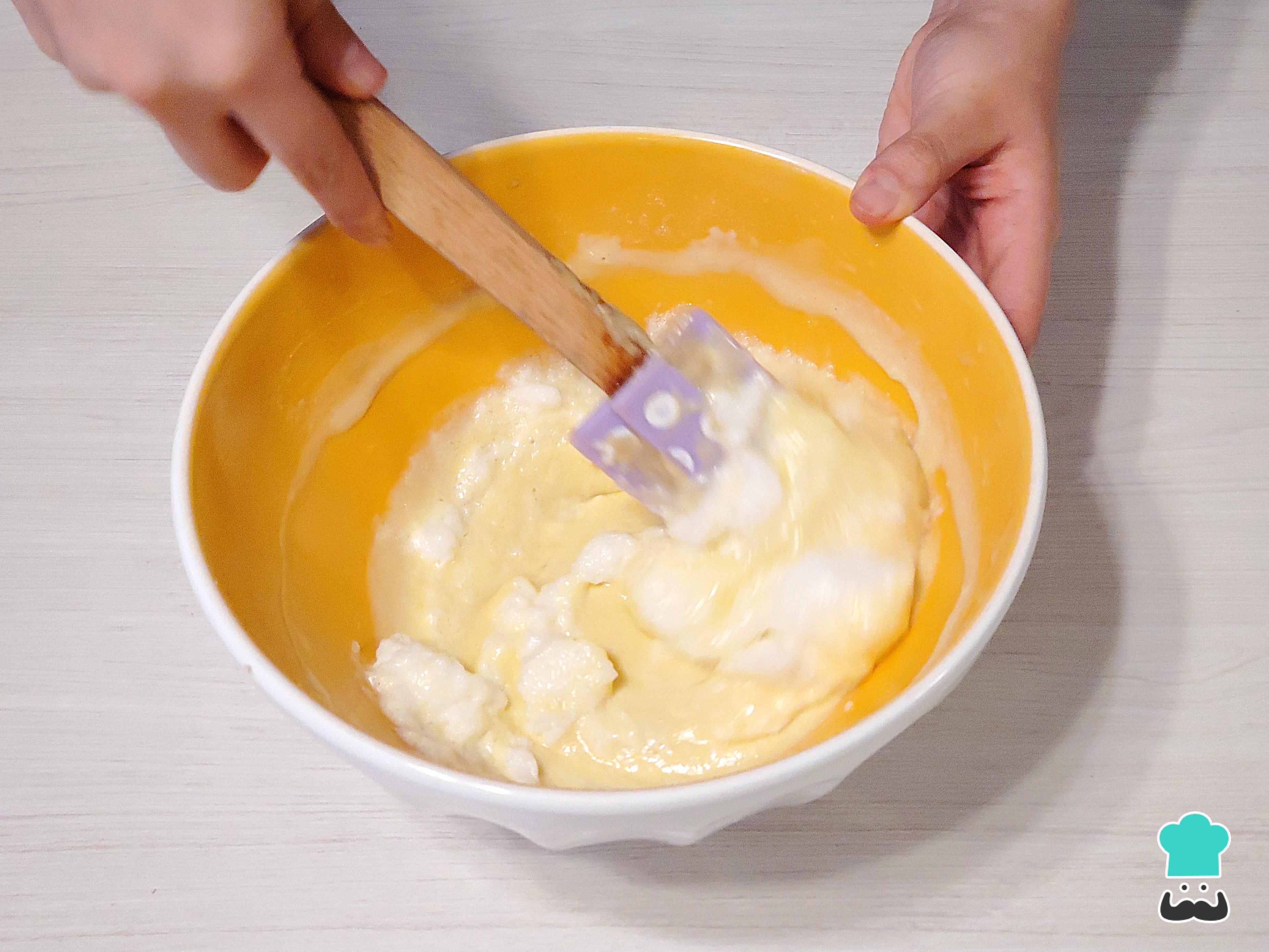 A continuación, integra las yemas y sigue mezclando.