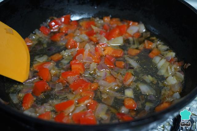 Calienta una sartén a fuego medio con un buen chorro de aceite de oliva. Cuando esté caliente, añade las verduras y deja que se pochen manteniendo la temperatura del fuego.