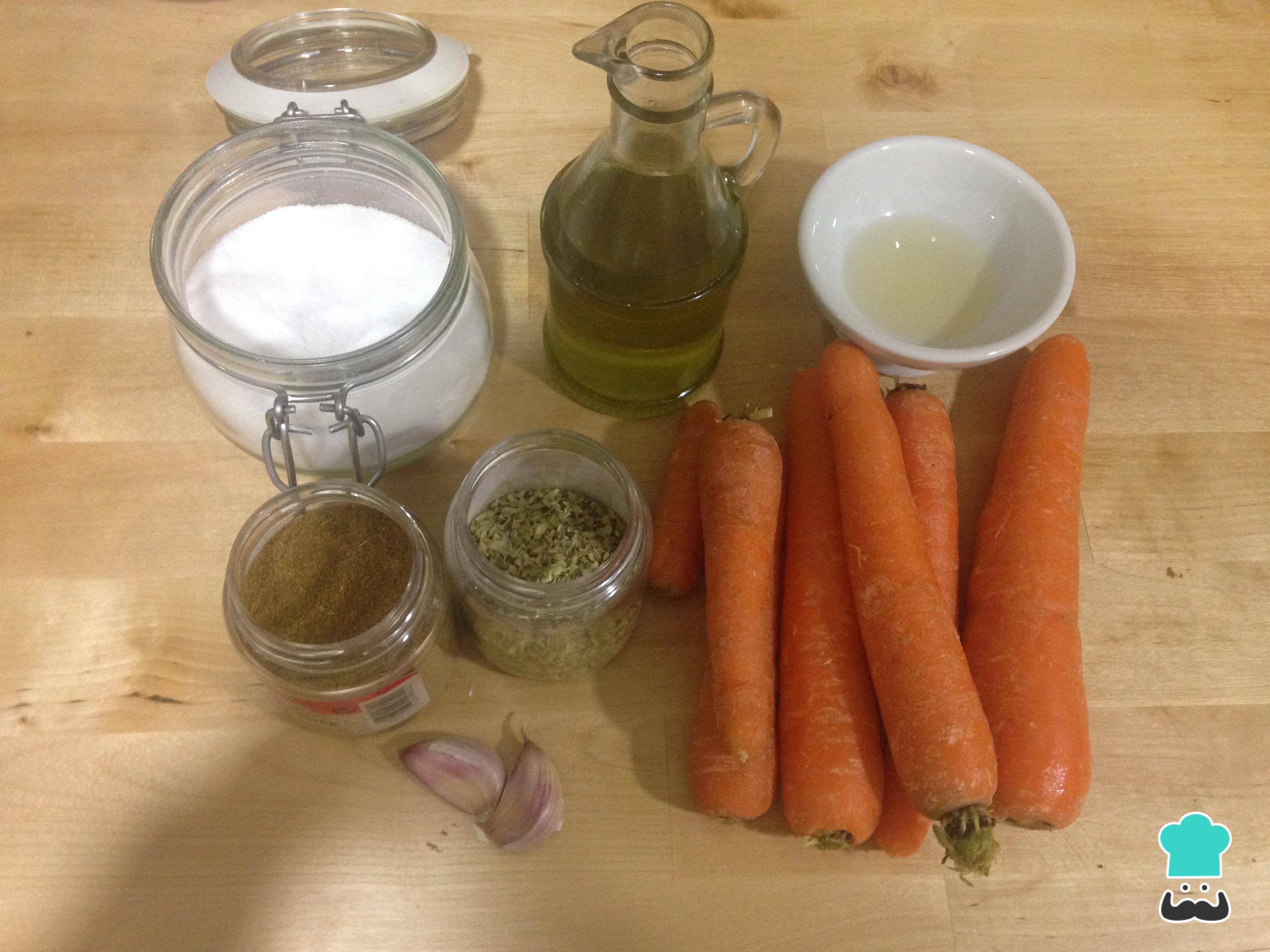 Para elaborar las zanahorias a la andaluza, reunimos todos los ingredientes.