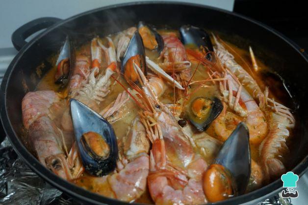 Incorpora las cigalas, las gambas y los mejillones, deja unos minutos y apaga. Ya está lista la zarzuela de marisco y pescado a la catalana.Deja reposar un rato, así la salsa queda más buena. ¡A comer! Cuéntanos en los comentarios tu opinión y comparte con nosotros una fotografía del resultado final.