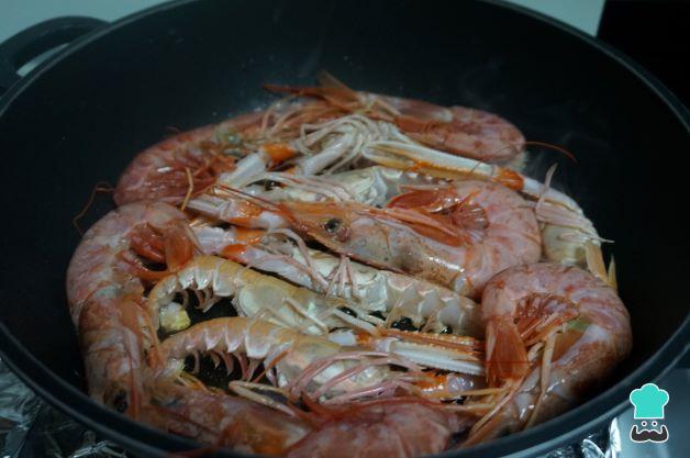 Dora las cigalas y las gambas a fuego fuerte en la cazuela. Retira y reserva.